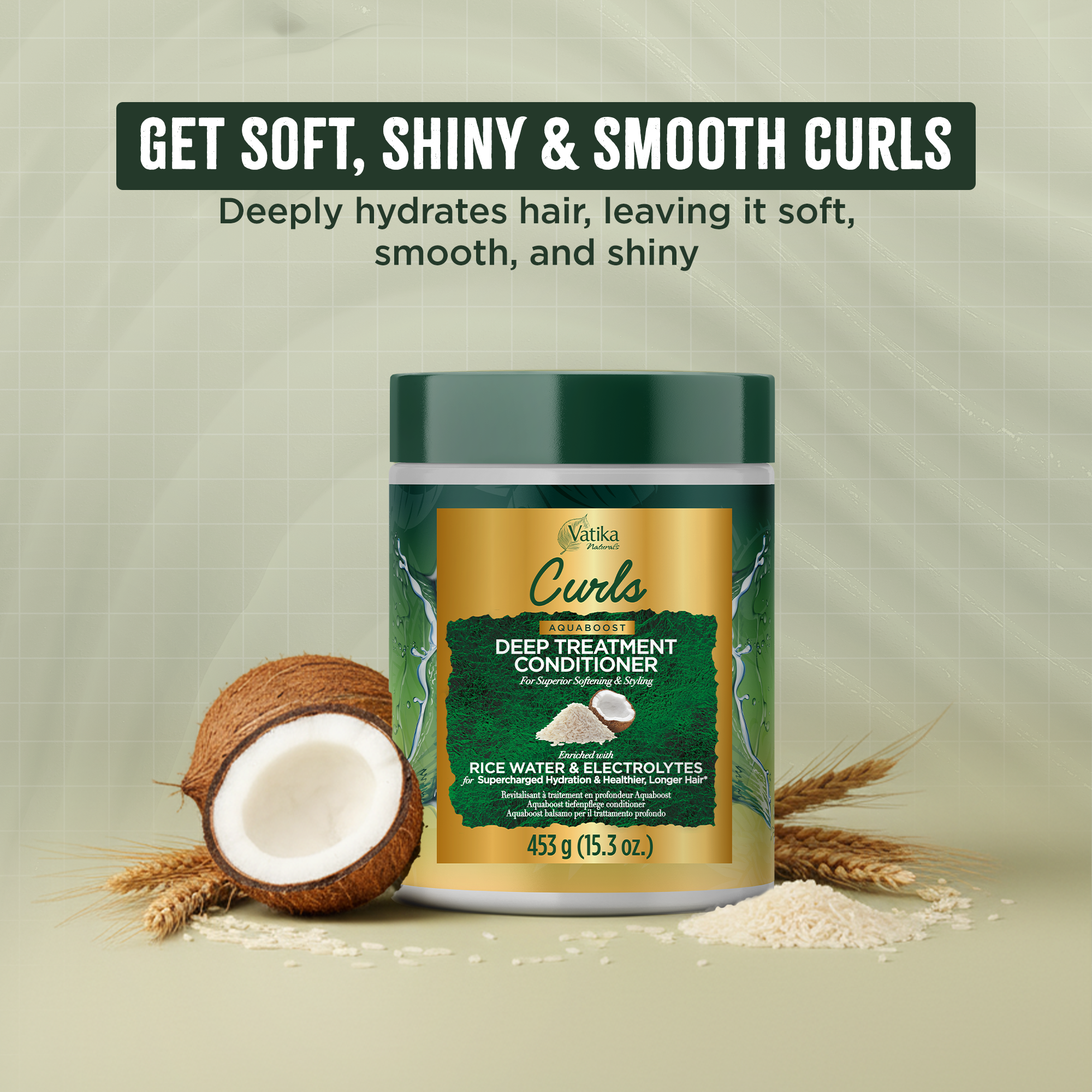 • Vatika Naturals Curls AQUABOOST Deep Treatment Conditioner with Rice Water & Electrolytes 453 gm