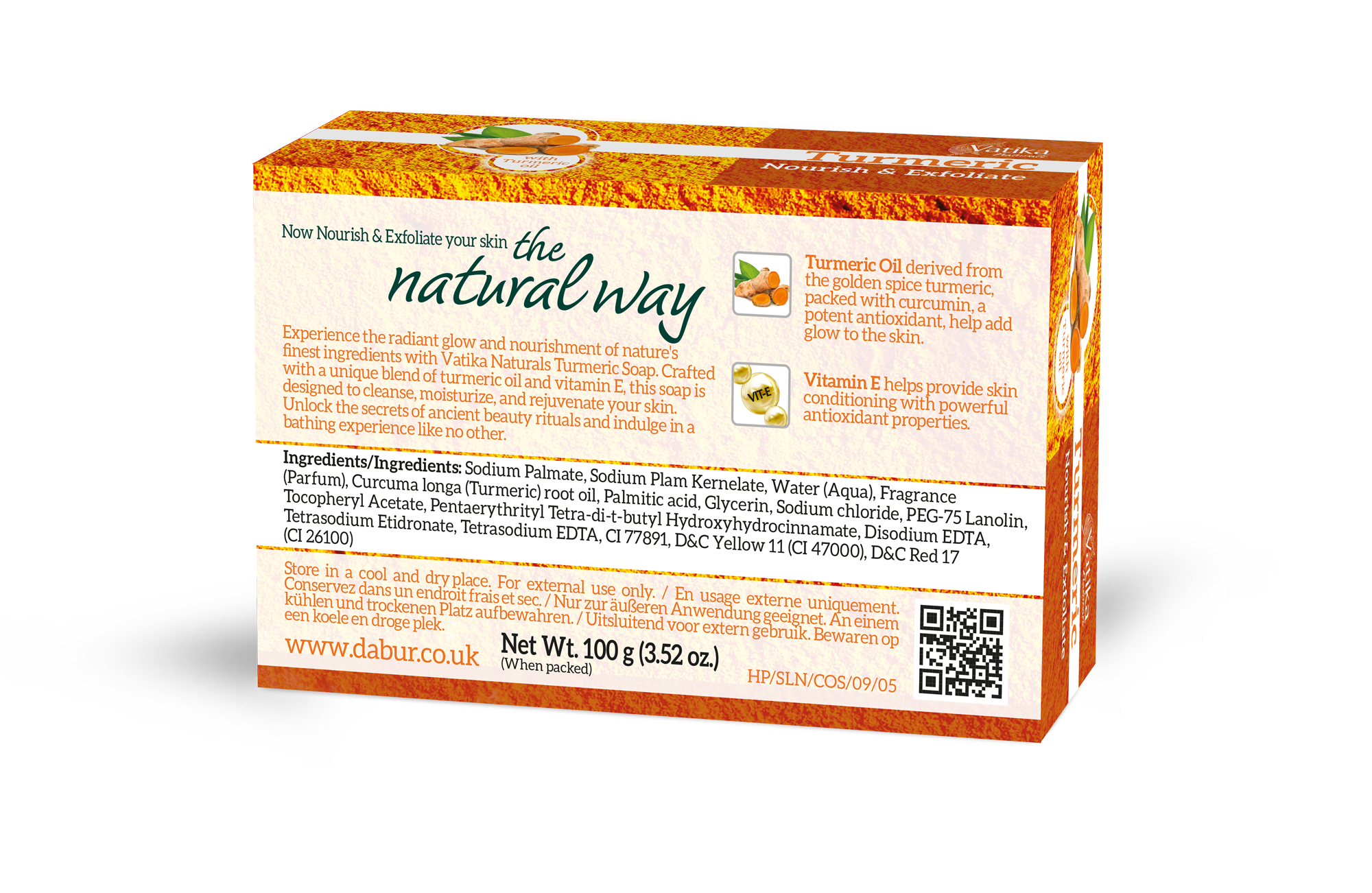Sodium Palmate, Sodium Plam Kernelate, Water (Aqua), Fragrance (Parfum), Curcuma longa (Turmeric) root oil, Palmitic acid, Glycerin, Sodium chloride, PEG-75 Lanolin, Tocopheryl Acetate, Pentaerythrityl Tetra-di-t-butyl Hydroxyhydrocinnamate, Disodium EDTA, Tetrasodium Etidronate, Tetrasodium EDTA, CI 77891, D&C Yellow 11 (CI 47000), D&C Red 17