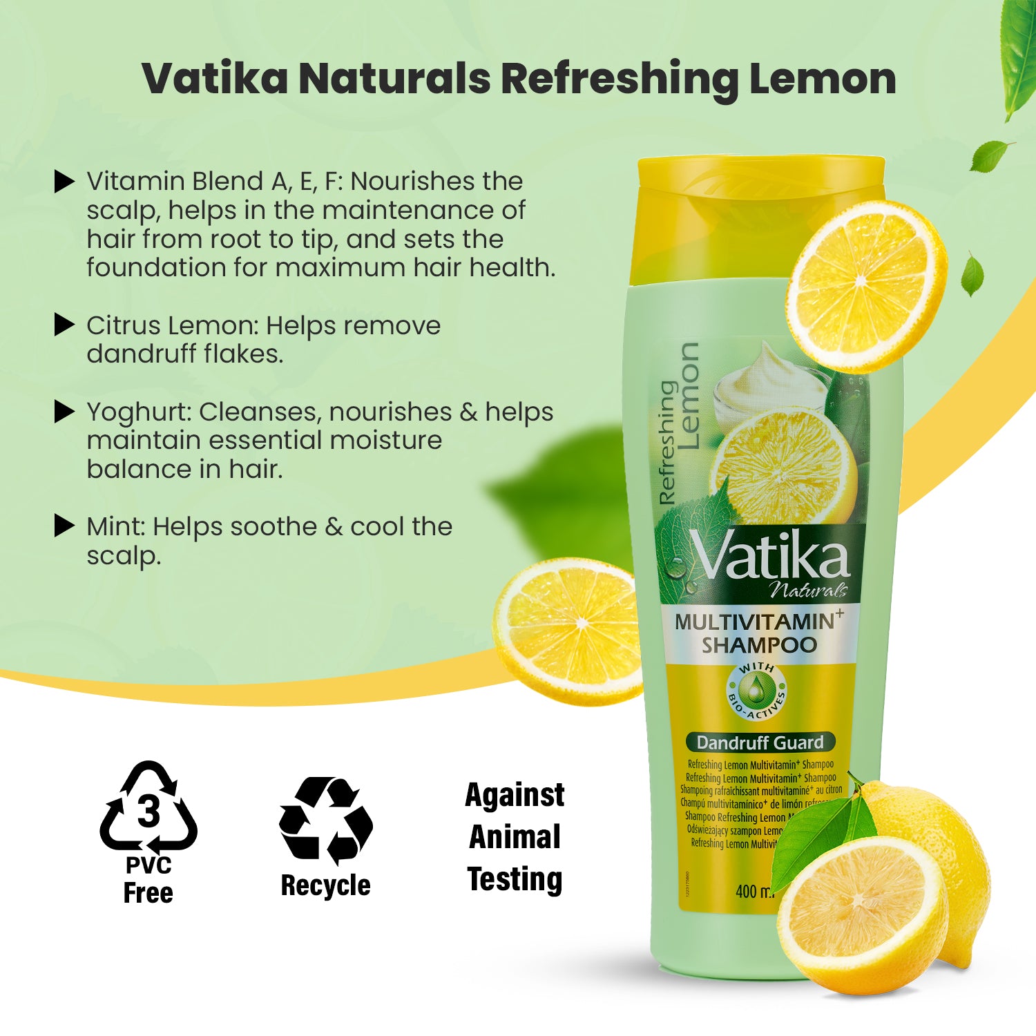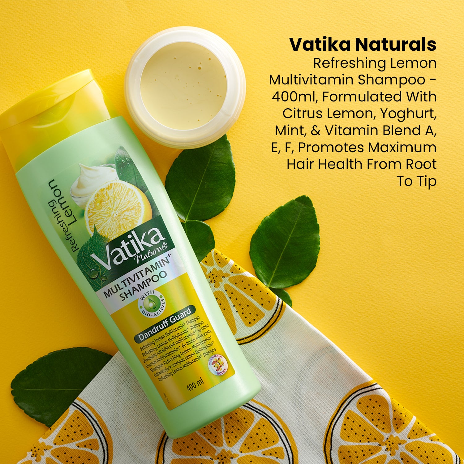 Lemon is one of the richest sources of vitamin C. Vatika naturals Lemon Multivitamin shampoo is a versatile product filled with several nutrients including magnesium, calcium, and flavonoids. It clears away dandruff and leaves hair smelling good.